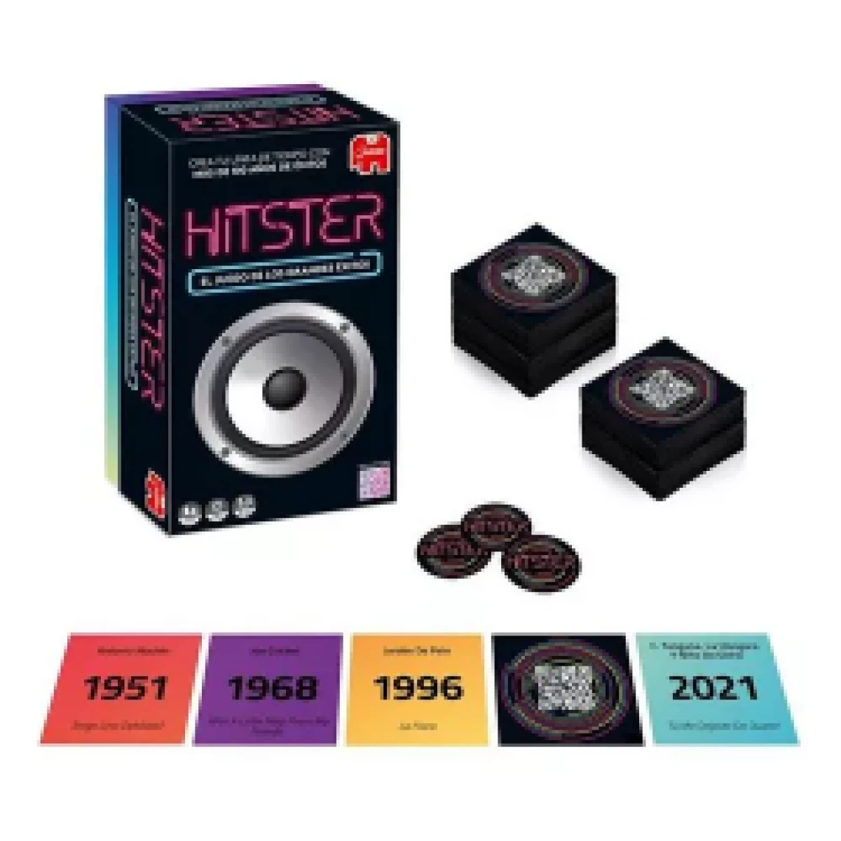 Viaja a través de más de 100 años de éxitos musicales, ordenándolos en tu línea de tiempo. El primer jugador que logre ordenar correctamente 10 tarjetas será coronado como el HITSTER.